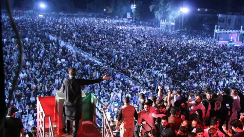 Imran Khan addresses a rally in Pakistan in October 2022