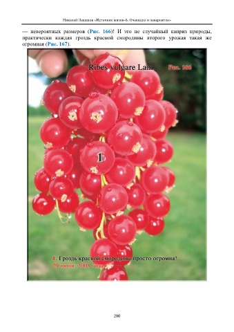 Николай Левашов «Источник жизни-6. Очевидно и невероятно» — невероятных размеров (Рис. 166)! И это не случайный каприз природы, практически каждая гроздь красной смородины второго урожая такая же огромная (Рис. 167). 200