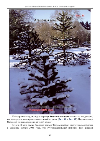 Несмотря на зиму, молодые деревца Araucaria araucana не только плодоносят,