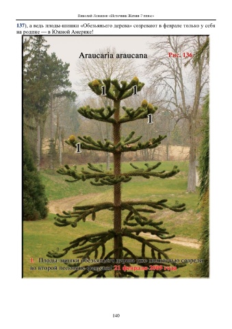 Николай Левашов «Источник Жизни-7 плюс» 137), а ведь плоды-шишки «Обезьяньего дерева» созревают в феврале только у себя на родине — в Южной Америке! 140
