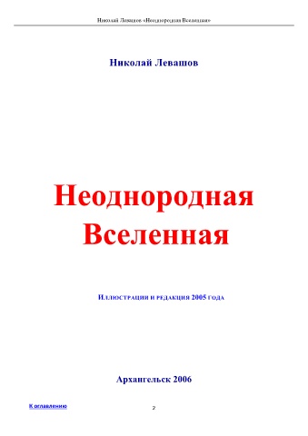 Николай Левашов «Неоднородная Вселенная» Николай Левашов Неоднородная Вселенная ИЛЛЮСТРАЦИИ И РЕДАКЦИЯ 2005 ГОДА Архангельск 2006 К оглавлению 2
