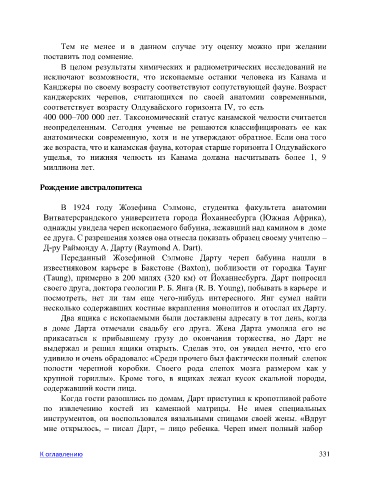 мне открылось, – писал Дарт, – лицо ребенка. Череп имел полный набор