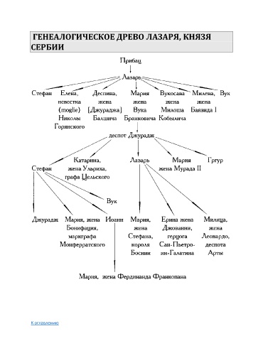 ГЕНЕАЛОГИЧЕСКОЕ ДРЕВО ЛАЗАРЯ, КНЯЗЯ СЕРБИИ К оглавлению