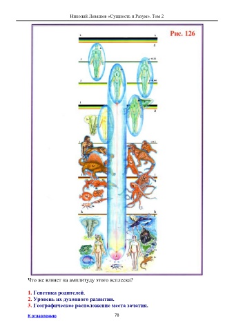 Николай Левашов «Сущность и Разум». Том 2 Что же влияет на амплитуду этого всплеска? 1. Генетика родителей. 2. Уровень их духовного развития. 3. Географическое расположение места зачатия. К оглавлению 78