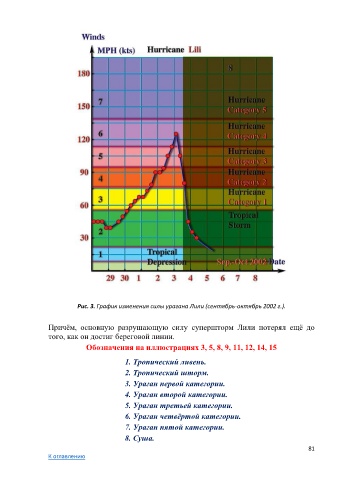 Рис. 3. График изменения силы урагана Лили (сентябрь-октябрь 2002 г.).