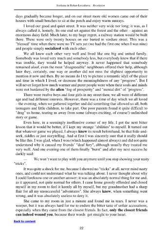 days gradually became longer, and on our street more old women came out of their
