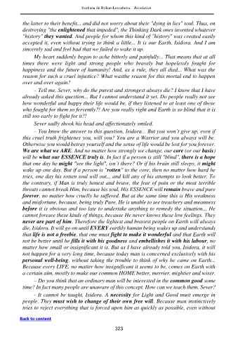 – It cannot be taught, Isidora. A necessity for Light and Good must emerge in