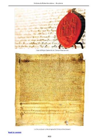 Svetlana de Rohan-Levashova. Revelation Seal of Pope Clement on Chinon Parchment In this picture is the original of Chinon Parchment Back to content 400