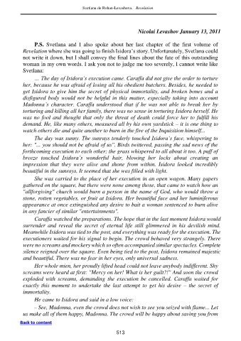 … The day of Isidora’s execution came. Caraffa did not give the order to torture