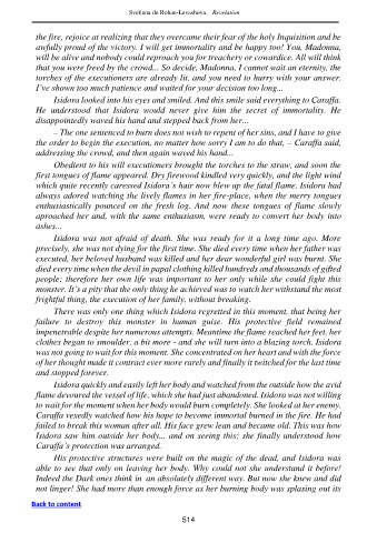 clothes began to smoulder, a bit more - and she will turn into a blazing torch. Isidora